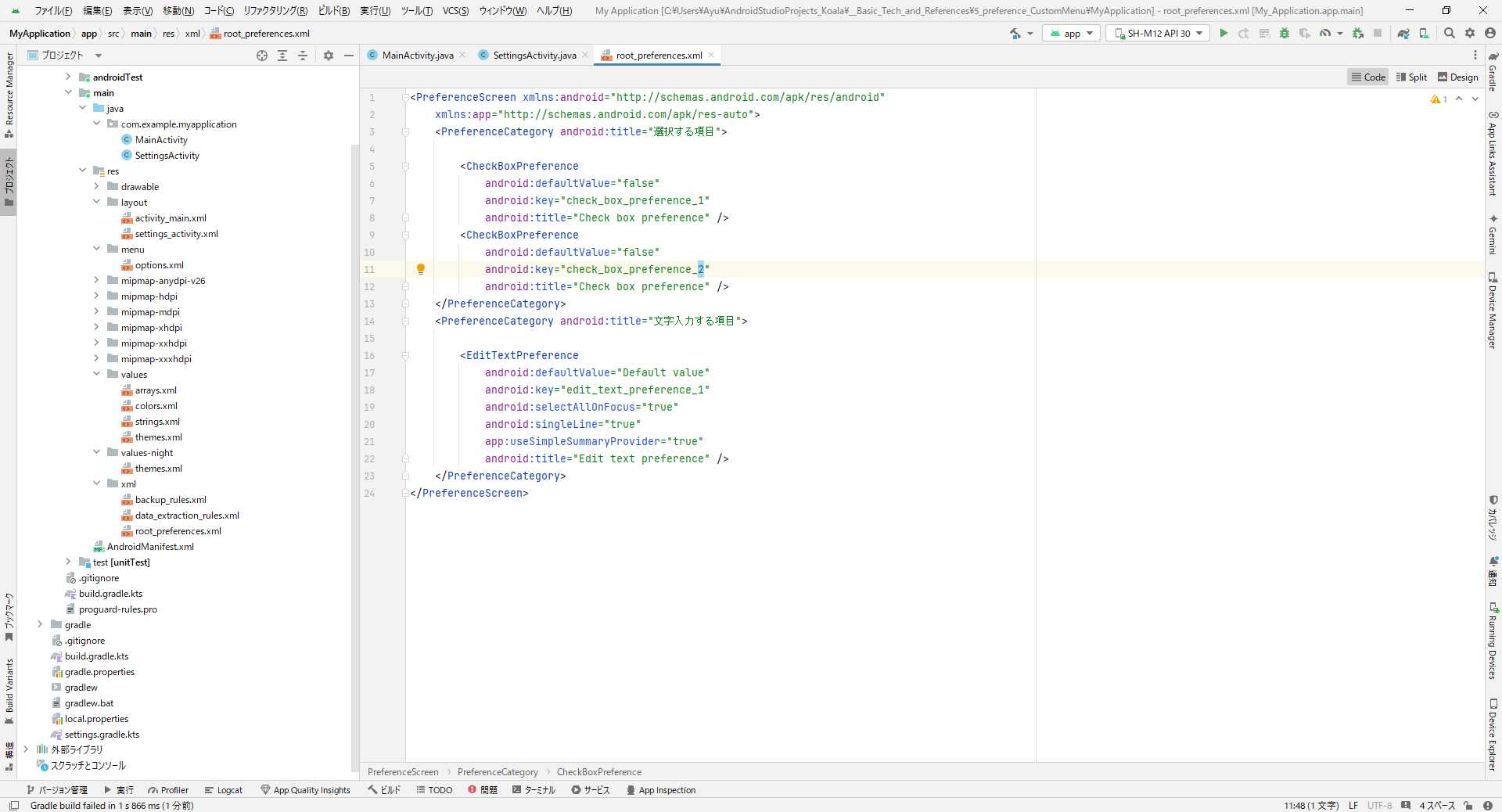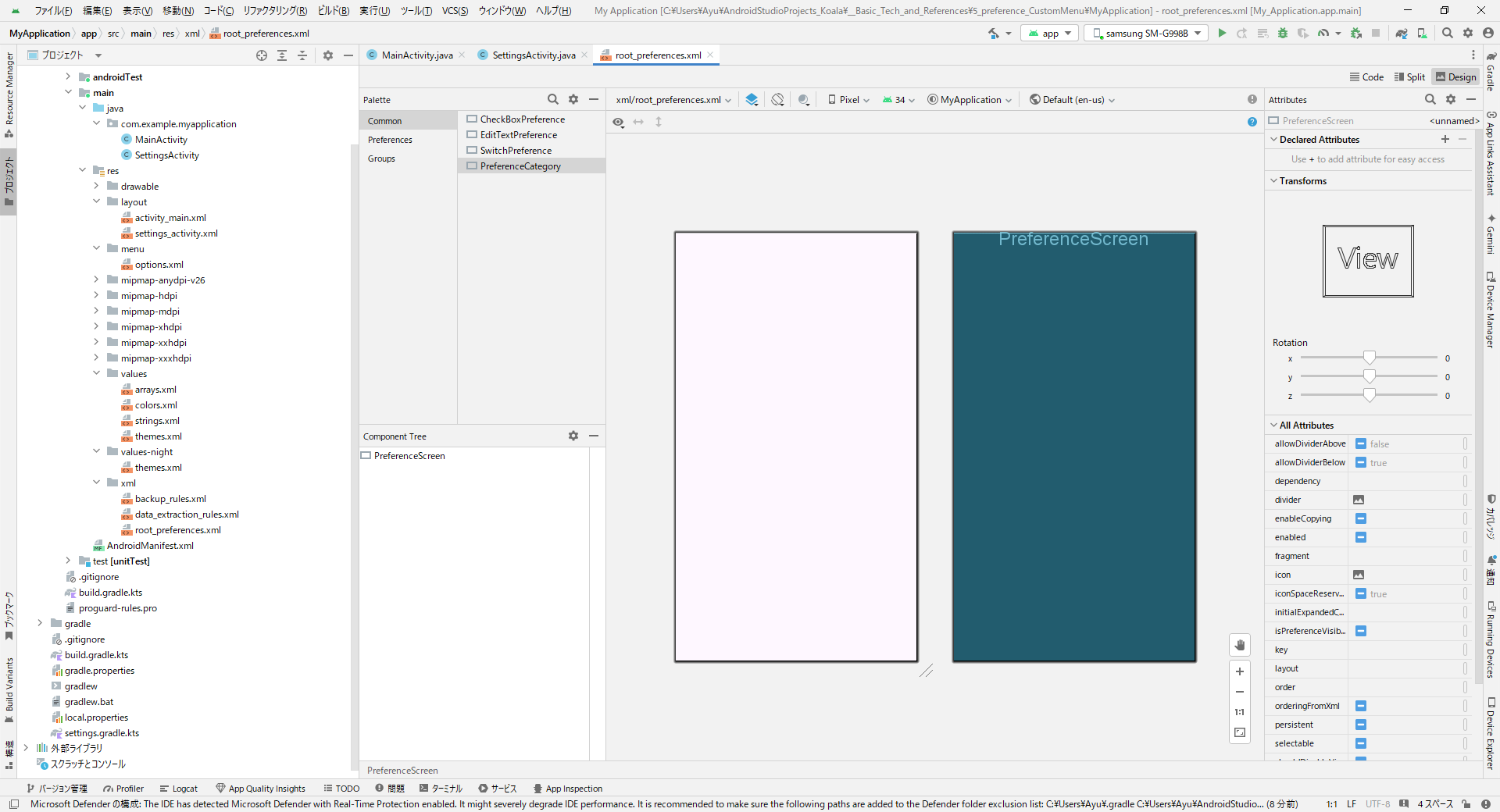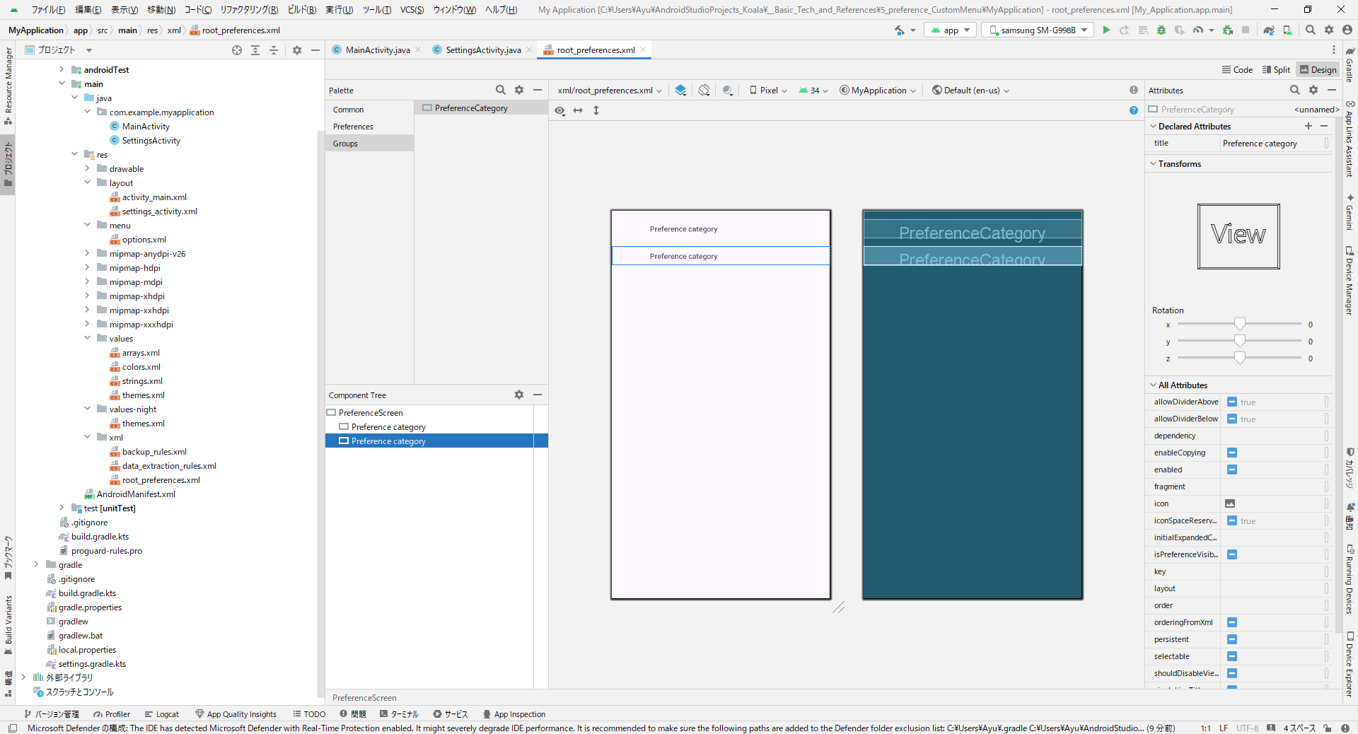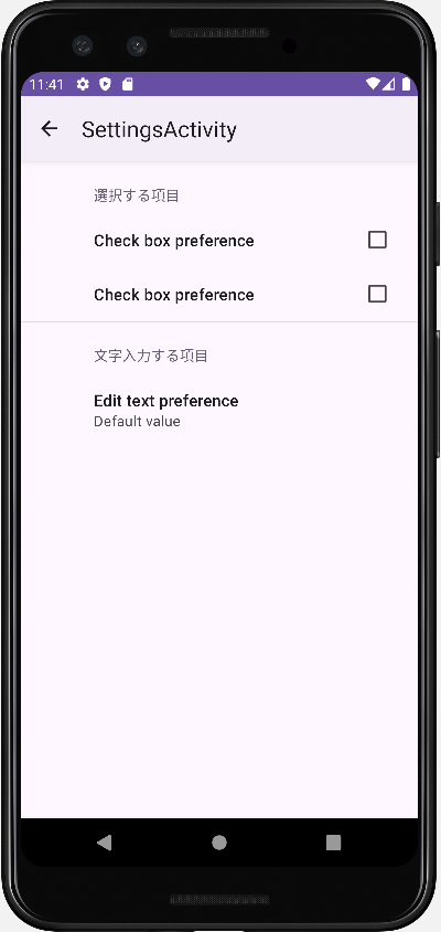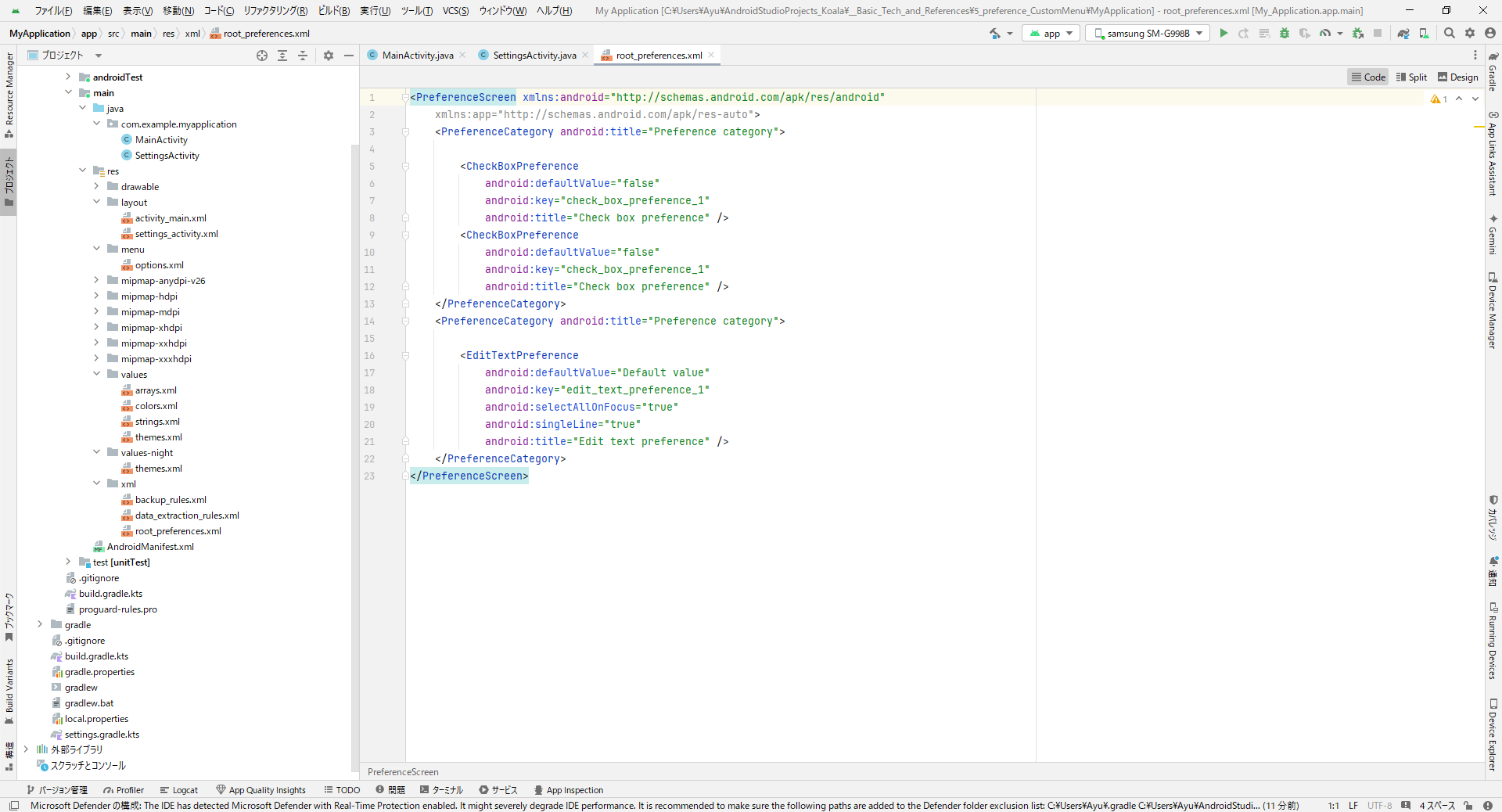 Android Studio 設定画面の作り方からアクティビティで参照する方法まで(3)