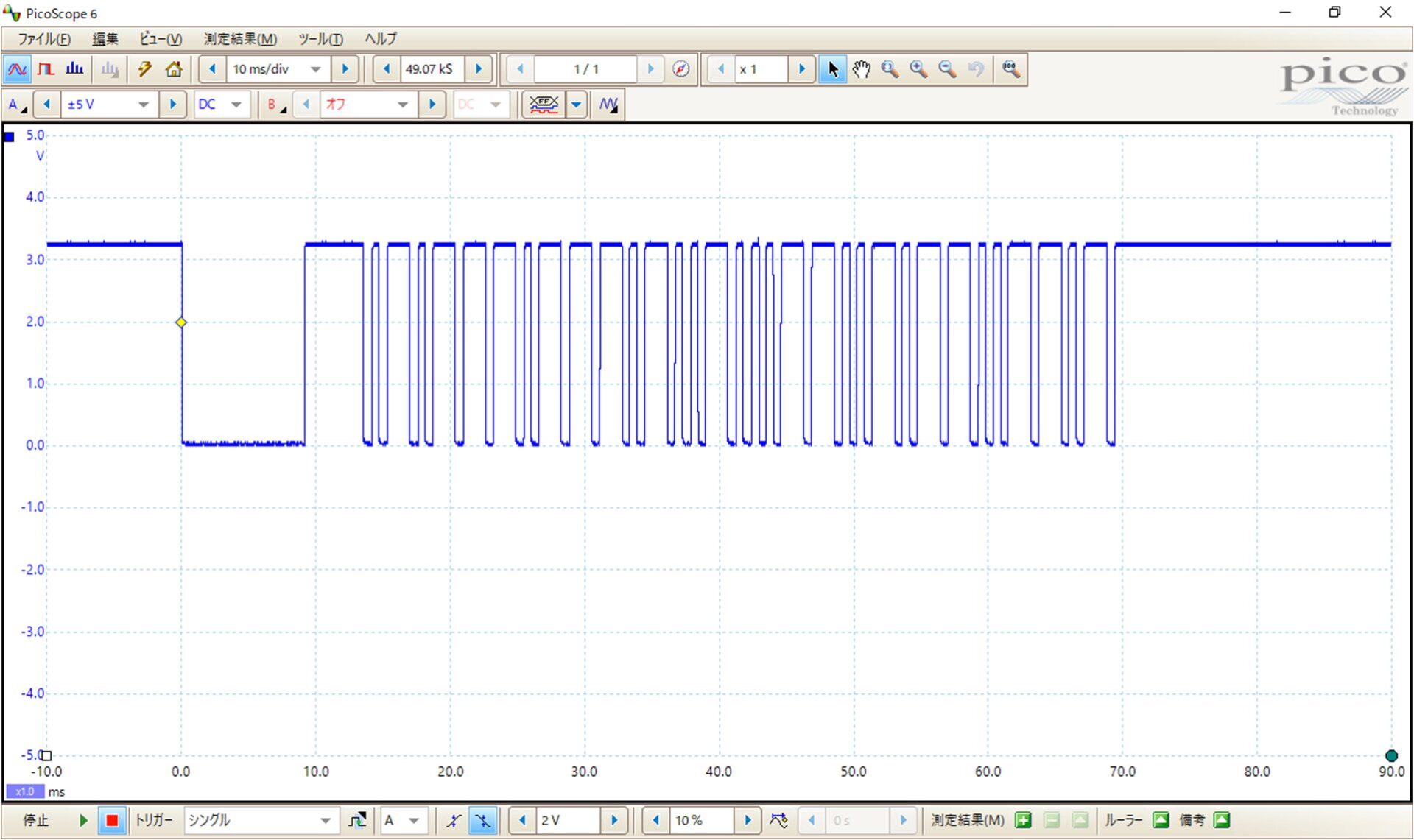 このようにして赤外線受光 IC 出力の 5V振幅が3.3V振幅にレベルシフトされて ESP32 モジュールの GPIO15ピンに入力されます。