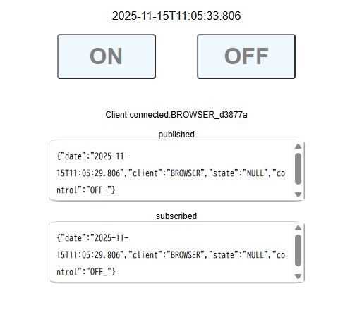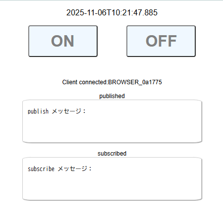 ・ON、OFF ボタン クリックすると ON または OFF の制御情報をパブリッシュします。