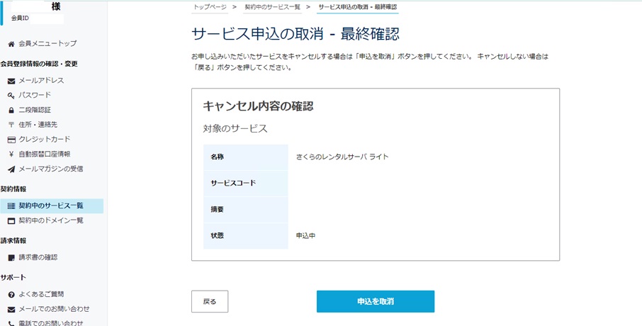 公式マニュアルはこちら → サービスの申込を取り消したい
