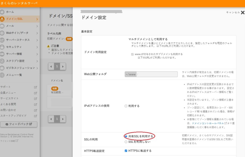 ホームページを立ち上げる場合は SSL 設定することをお勧めします。 2023年3月に、さくらのレンタルサーバを申込んでから初期ドメイン(〇〇.sakura.ne.jp)に SSL 設定した内容を記録として残しておきます。 最新の情報はさくらインターネットの公式マニュアルを参照してください。