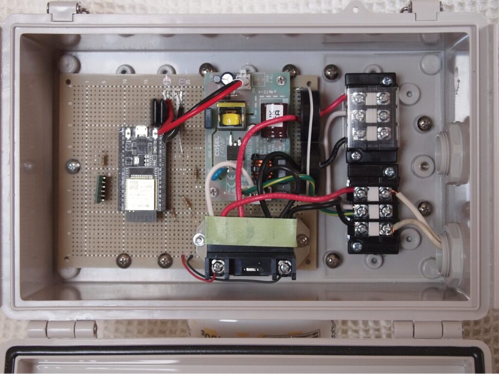 ところが市販のIoT機器にはAC 100VやAC 200Vの商用電源を直接制御できるものは見当たらず、自分で開発することにしました。