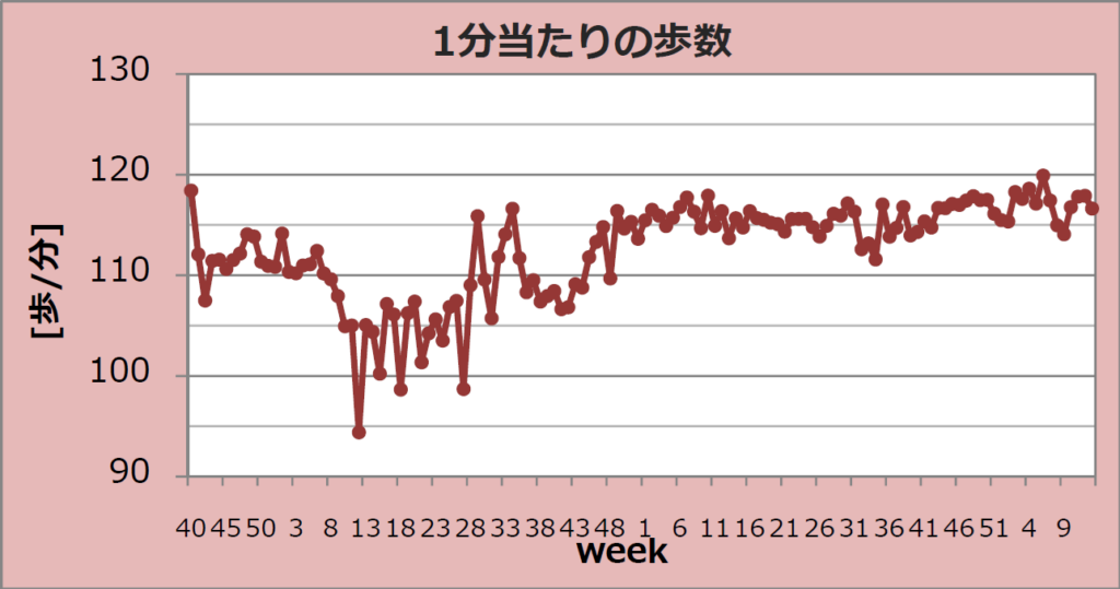 13 週の 1 分当たり歩数は 117 歩/分となり、平均 113 歩/分を上回ることができました。